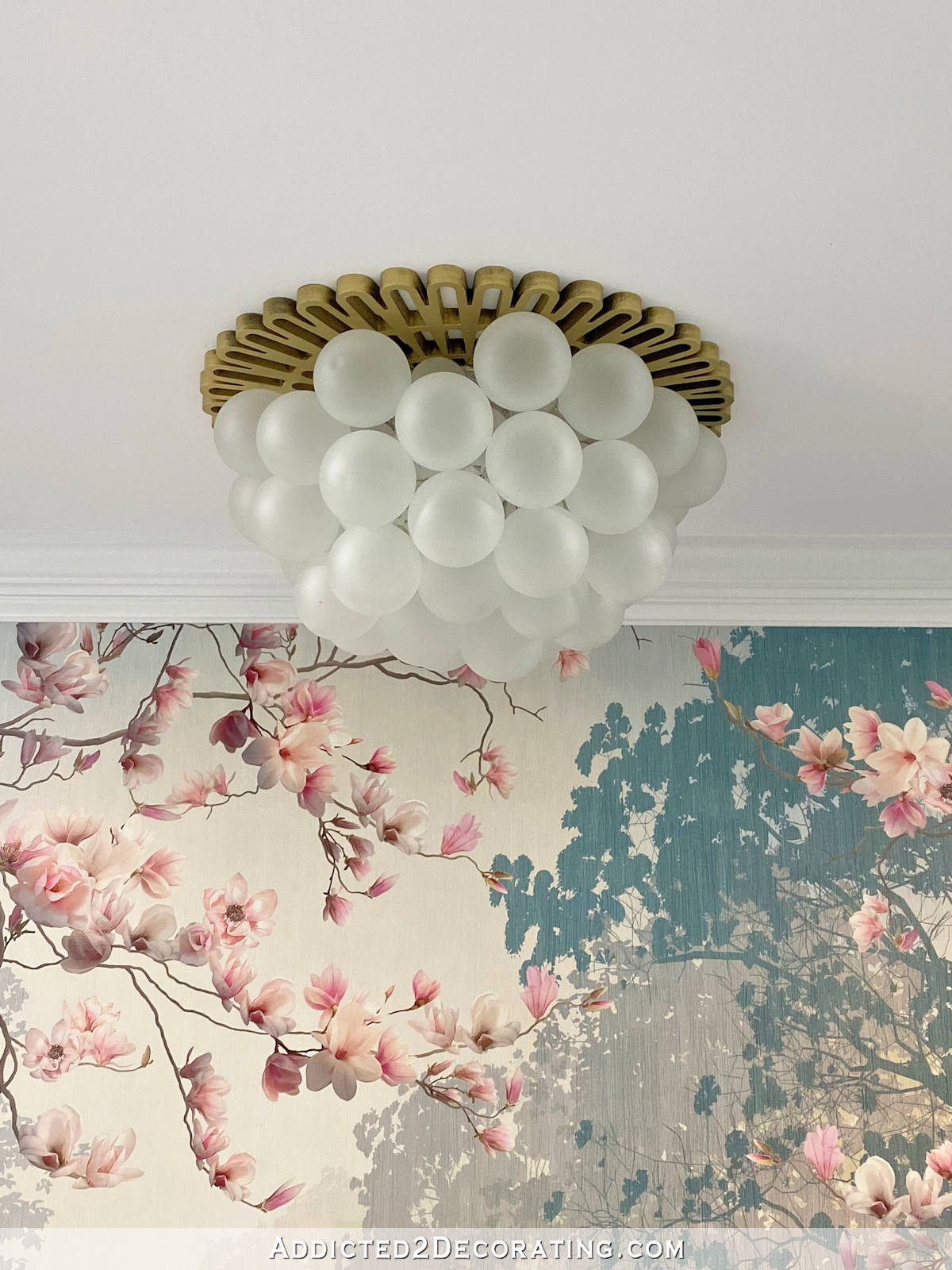 Also in 2016, I made a semi-flush light out of wood for our music room. This light hung in our music room for quite some time. Sadly, I never got to see this light in the finished music room. By the time I actually finished the music room, I had already swapped this light out for the capiz chandelier that we currently have in the music room.