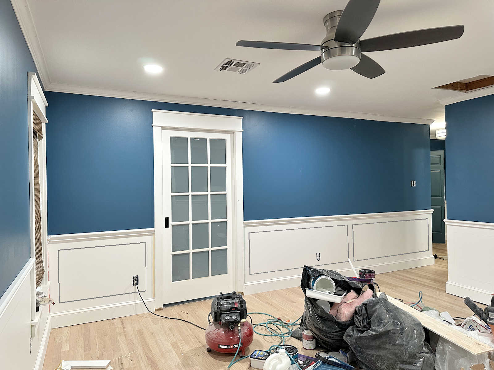 Tomorrow, I’ll start on the picture frame molding. I’m pretty sure I can get that done in a day. And then I can finally wood fill all the holes, sand, caulk, and get the trim painted. I’m going to do my best to stay focused (something I’ve struggled with lately) and work diligently so that I can get these walls finished by the end of the weekend.