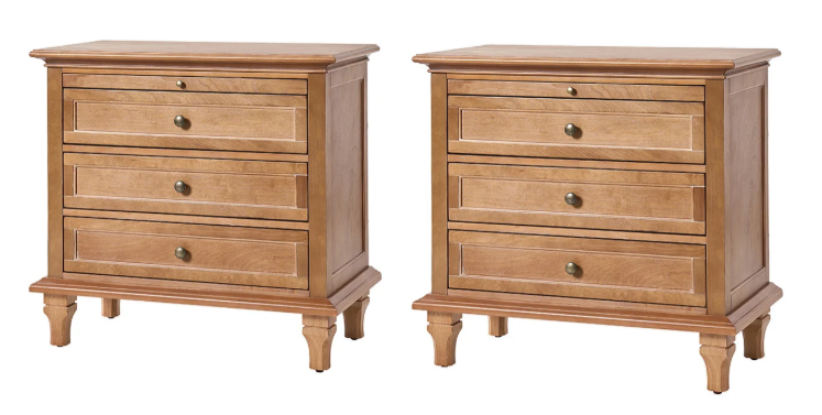 I also like these from Wayfair. I actually like these feet better, but I like the overall design of the previous bedside tables a little better. These are $479.99 for a set of two (affiliate link). These are 30.9” high, 33.9” wide, and 15.7” deep. So I do like that these are a bit wider than the ones above, but they’re not that much wider. It’s not really enough to make a significant difference.