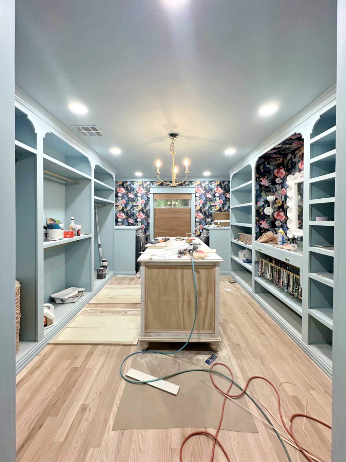 My closet is almost done. Do you feel like you’ve been hearing that for a month now? Because I’ve been saying it for about a month now. I’m not lying when I say it. The closet truly is almost done. But all of the finishing details just seem to drag on and on and on. But when you look at the closet as a whole, as the project stands as of this morning, it really does look almost finished, right?