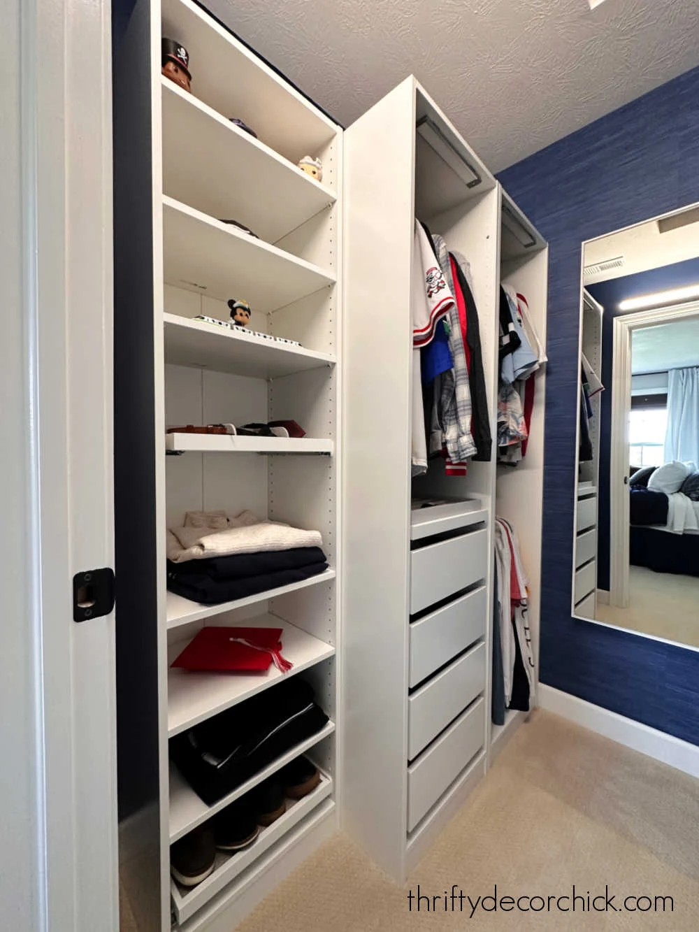 In the middle Pax unit of his closet, we were able to use the drawers I had