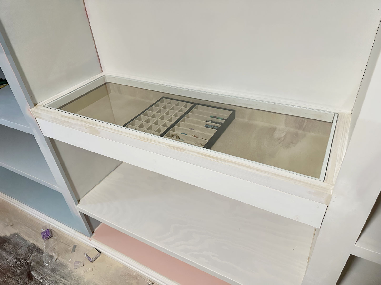 And with that, the basic build of my jewelry drawer with the glass countertop was finished!