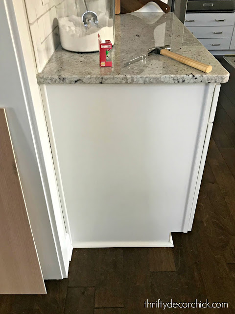 This one is a quick project that I never had to address in our old kitchen makeover because we didn’t have any exposed cabinet ends:
