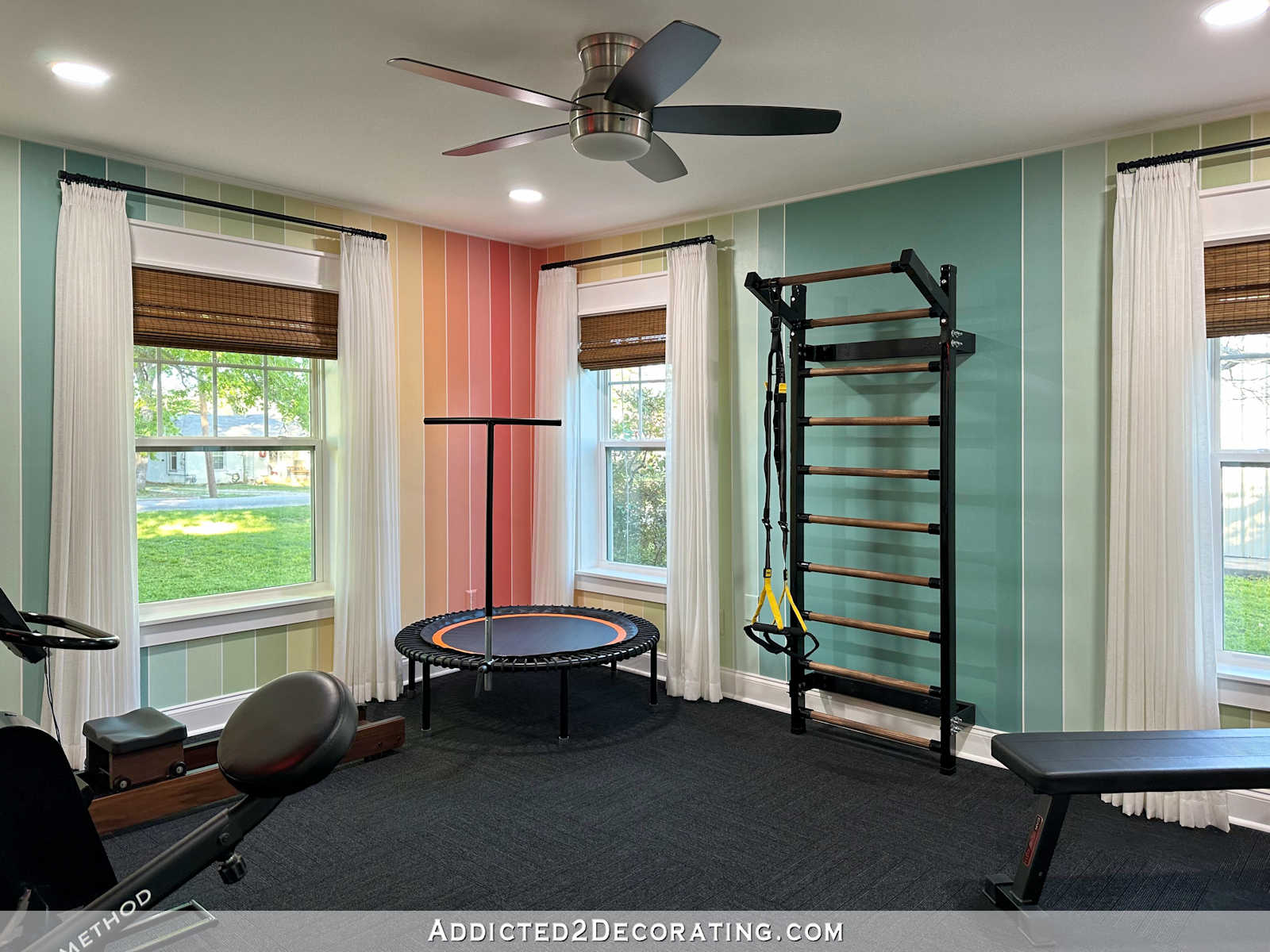 This plan works out for us because this room is also connected to the big accessible bathroom that I finished a couple of years ago. That bathroom is right through this door in this room (again, this picture is from when this room was formerly our home gym)…