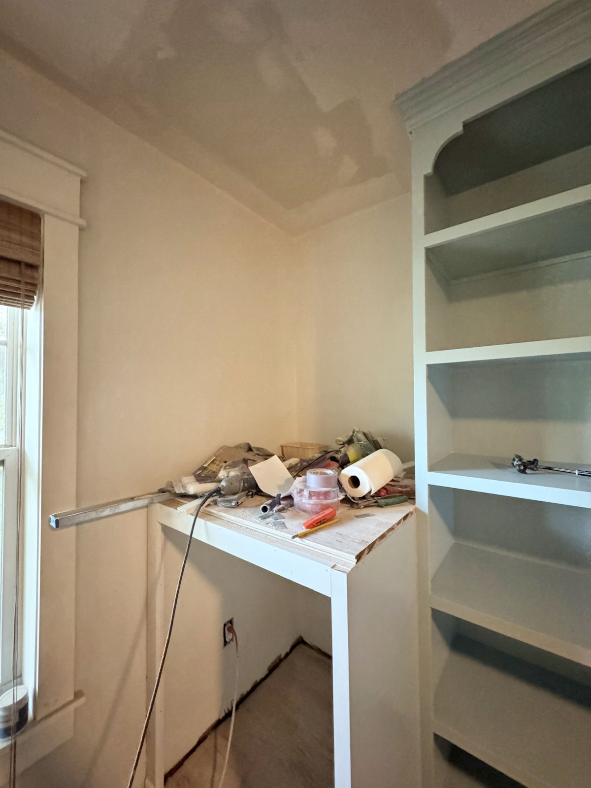 And I’m not really sad about it, to be honest. This closet already has more storage than I’ve ever had in my entire life. And I still have an island to build, which will have loads of drawers in it. I’ll have more storage than I’ll know what to do with.