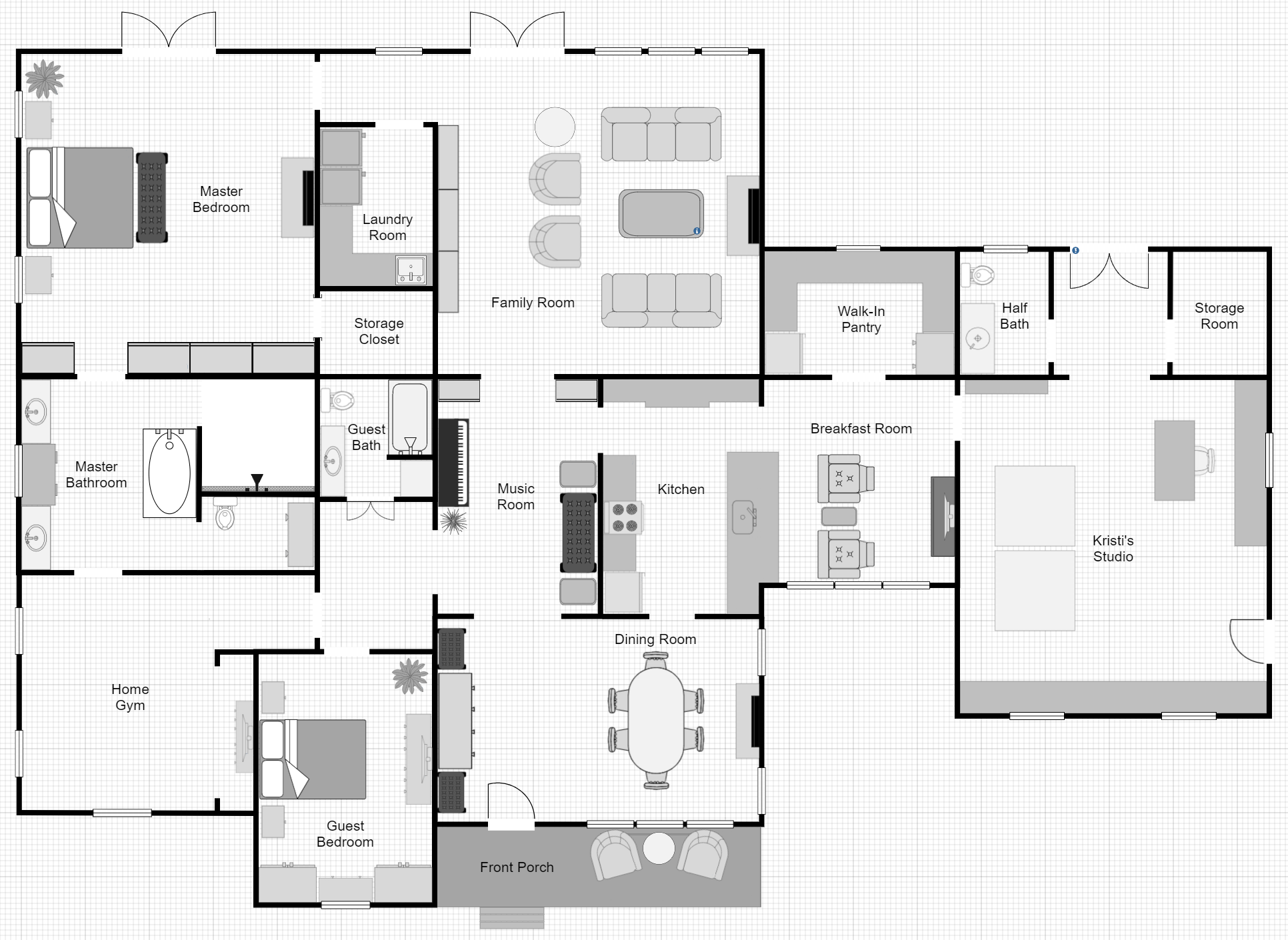 I eventually realized that it wasn’t a good idea to build a brand-new addition and not include an actual closet for the bedroom, so I tried to fit one in. But the only thing I could come up with was something like this, which would have resulted in two different closets, one smaller and one much larger, that were about seven feet wide and created a kind of hallway leading from the bedroom into the bathroom.