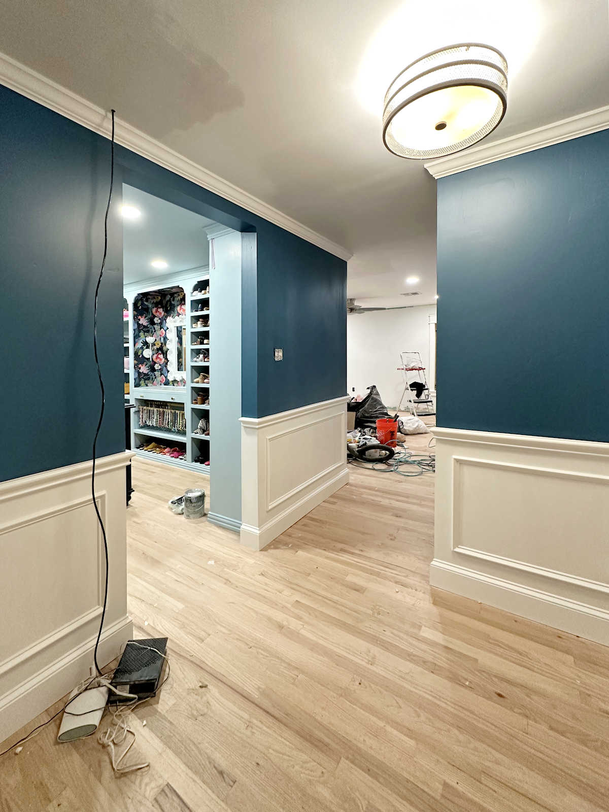 And now that the foyer is to this stopping point (except for the ceiling), I don’t feel quite as anxious to jump right to the big project (i.e., the molding) in the bedroom just so that I can have the satisfaction of seeing big steps towards progress.