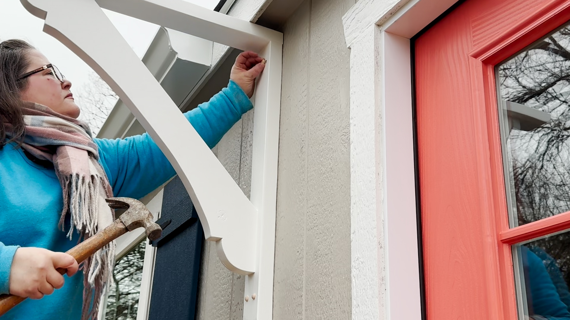 So today, I’m going to show you how I made the brackets for the pergola. I had originally planned to build the brackets to match those on the side door of the studio, but I changed my mind. I think those brackets are too big and bulky for the workshop. Plus, the two doors can’t be seen at the same time. If you’re standing where you can see the workshop front door, there’s no way to see the studio side door, and vice versa. So after deciding that wasn’t important, I just went with a different design that I really liked.