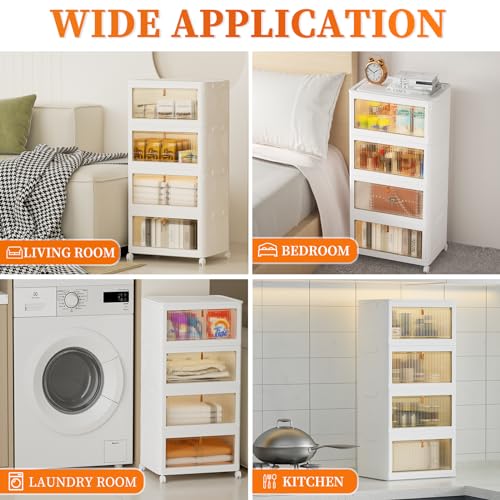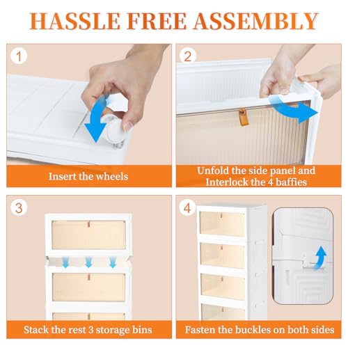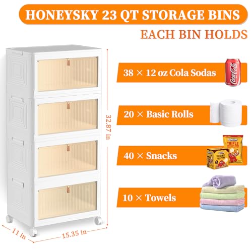 4 Tier Plastic Storage Bins 23QT, Stackable Storage Containers with Wheels and Lids, Folding Storage Boxes,Closet Organizers and Storage,Collapsible Organization and Storage for Bedroom,Kitchen,Dorm