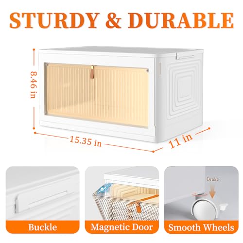 📦【Movable Storage Containers】Our storage containers have 4 rotating wheels on the underside, which is simple to maneuver when wanted. As well as, 2 wheels of the storage organizer have buckles which might maintain the wheel in place to stop the storage cupboard from transferring round.